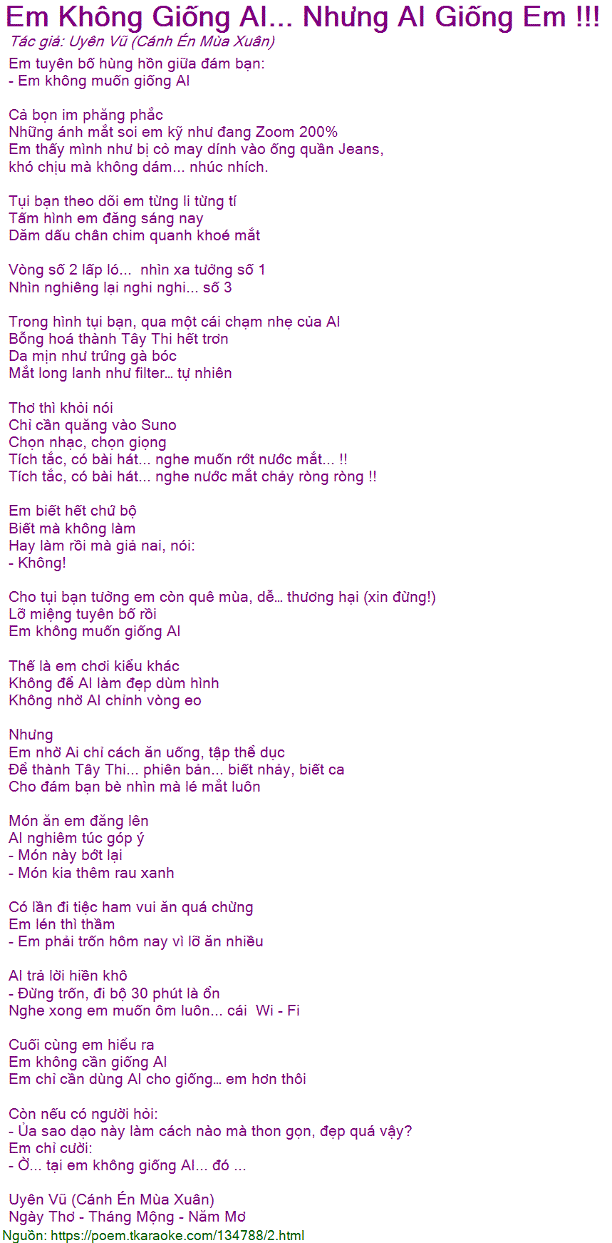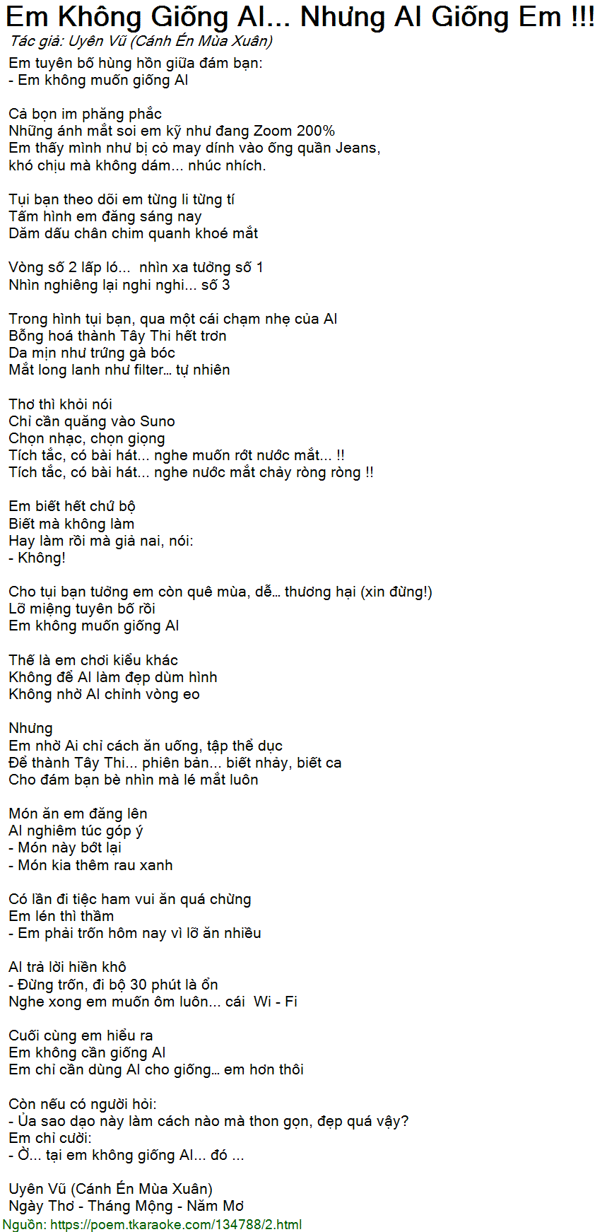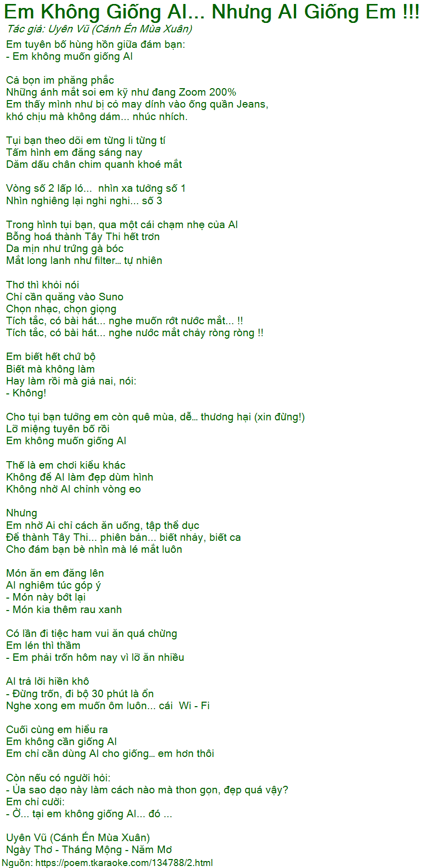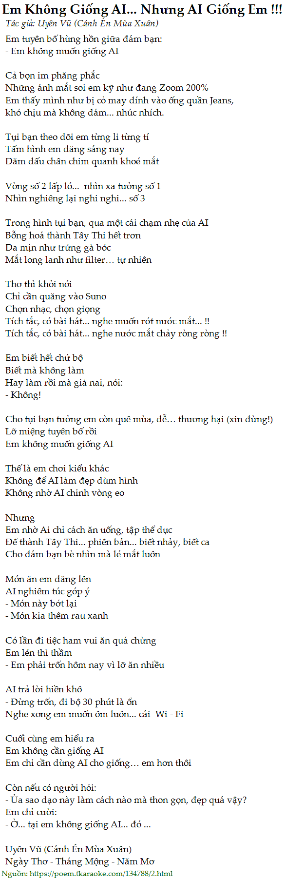 Em Không Giống AI... Nhưng AI Giống Em !!!