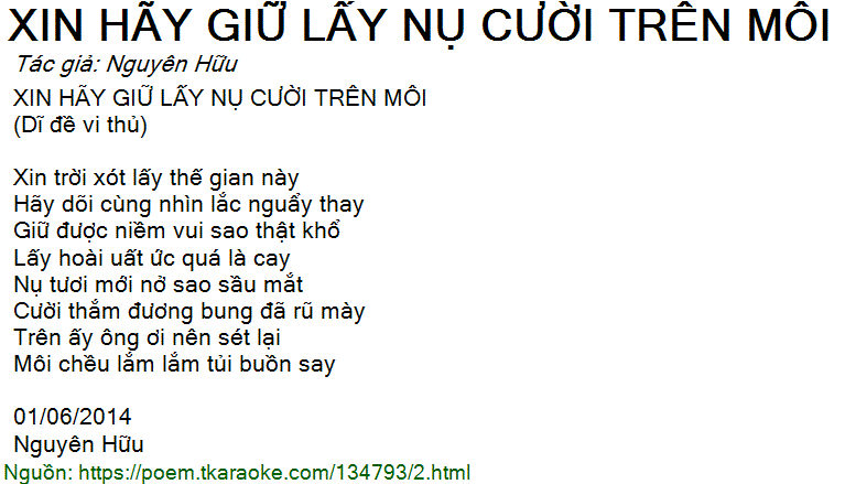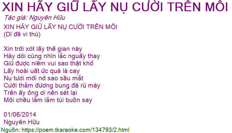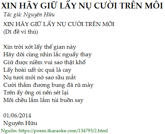 XIN HÃY GIỮ LẤY NỤ CƯỜI TRÊN MÔI