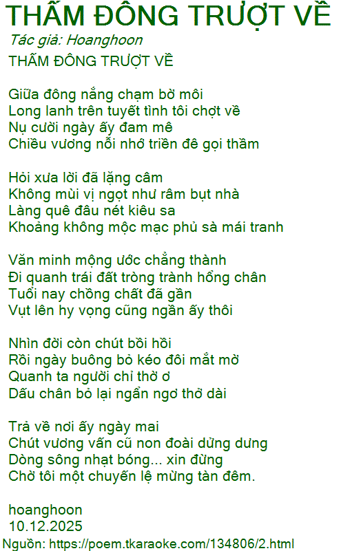 THẤM ĐÔNG TRƯỢT VỀ