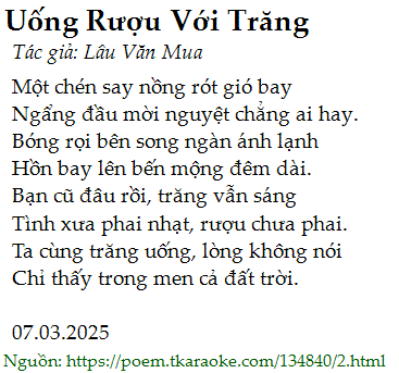 Ngẩng đầu mời nguyệt chẳng ai hay.