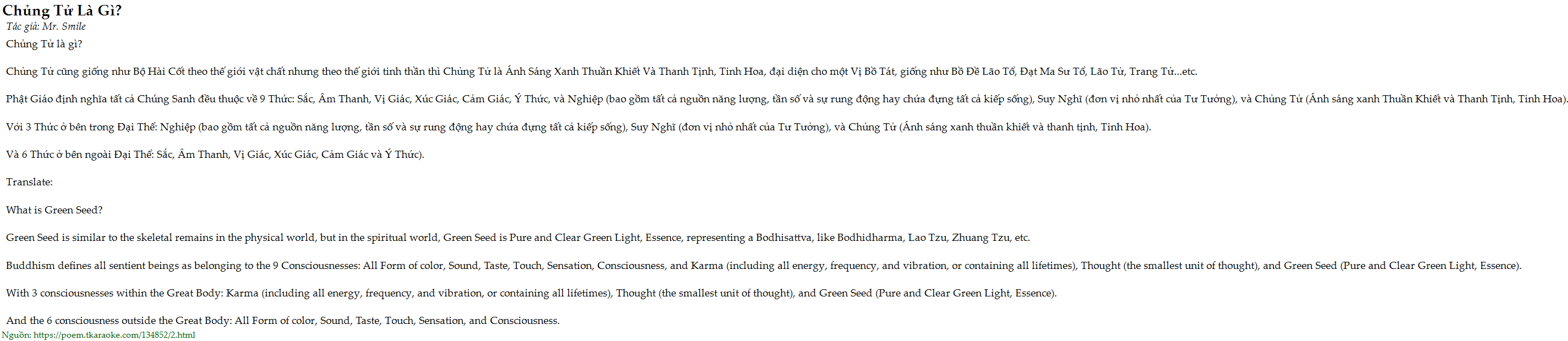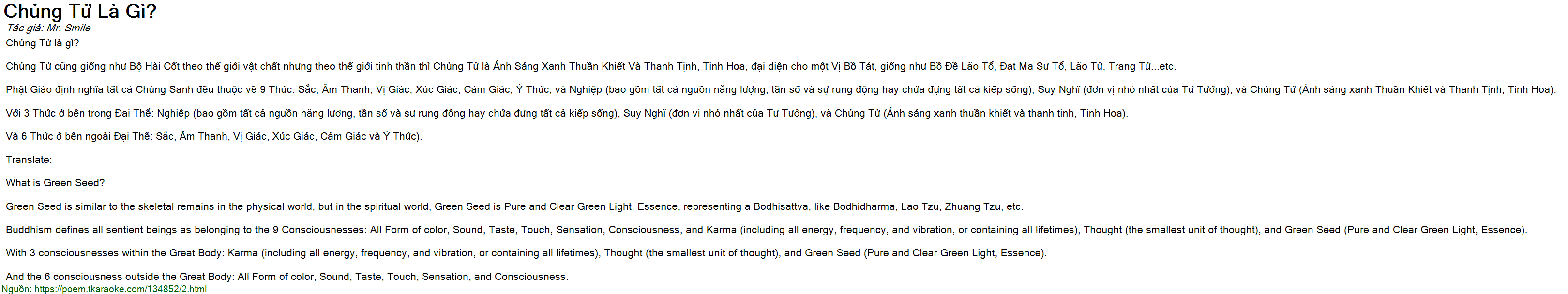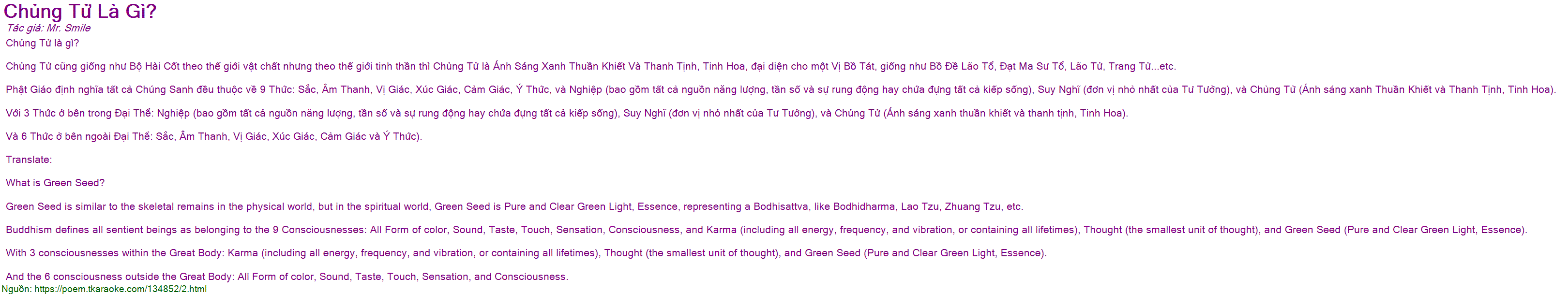 - • Chủng Tử Là Tinh Hoa, Hạt Giống Thanh Tịnh, Thuần Khiết Nhất Của Ánh Sáng Xanh (Chủng Tử Không Có Bắt Đầu Và Cũng Không Có Kết Thúc). (Mr.Smile)