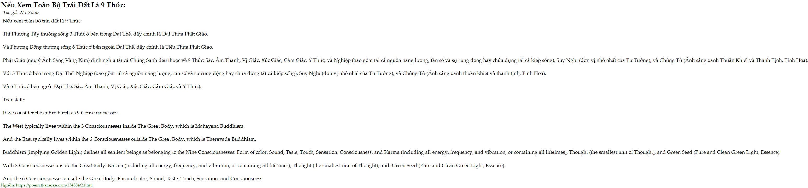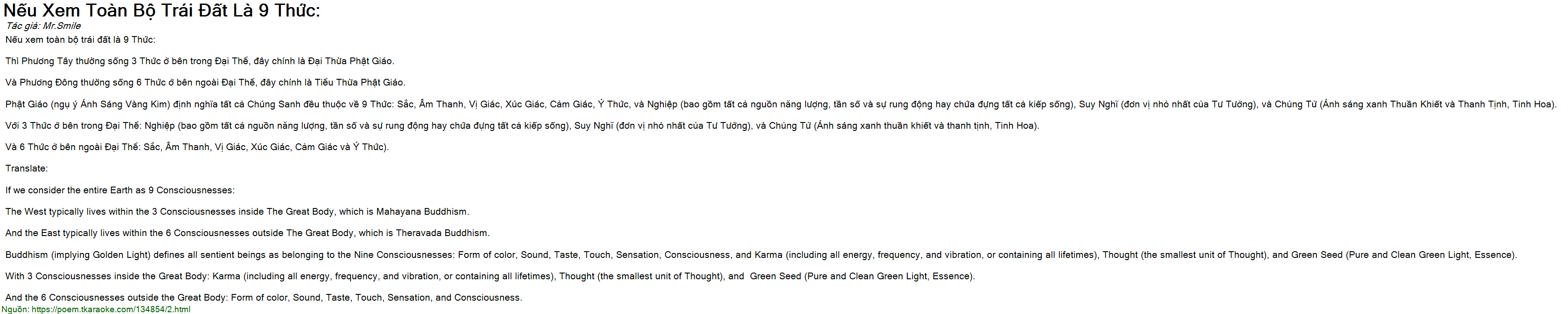 Nếu xem toàn bộ trái đất là 9 Thức: