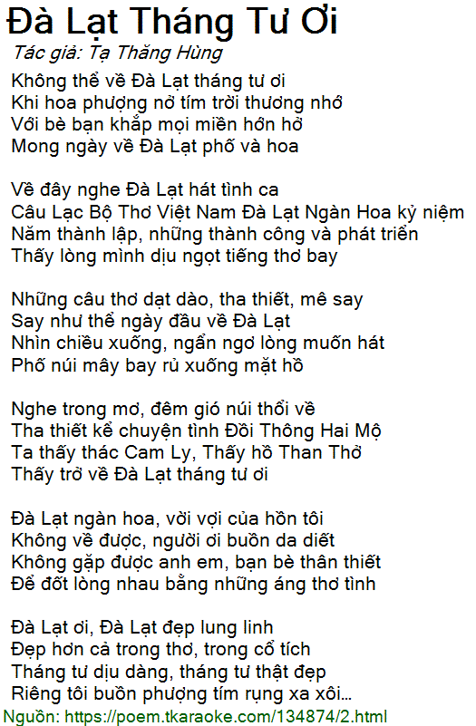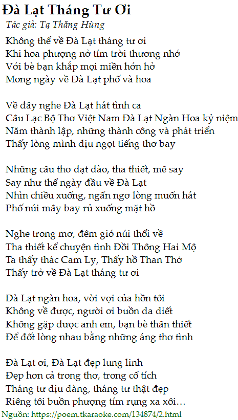 Thấy trở về Đà Lạt tháng tư ơi