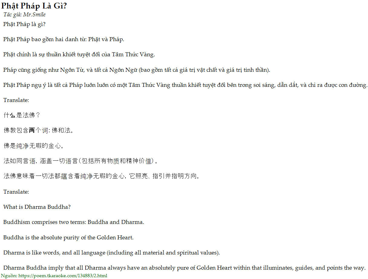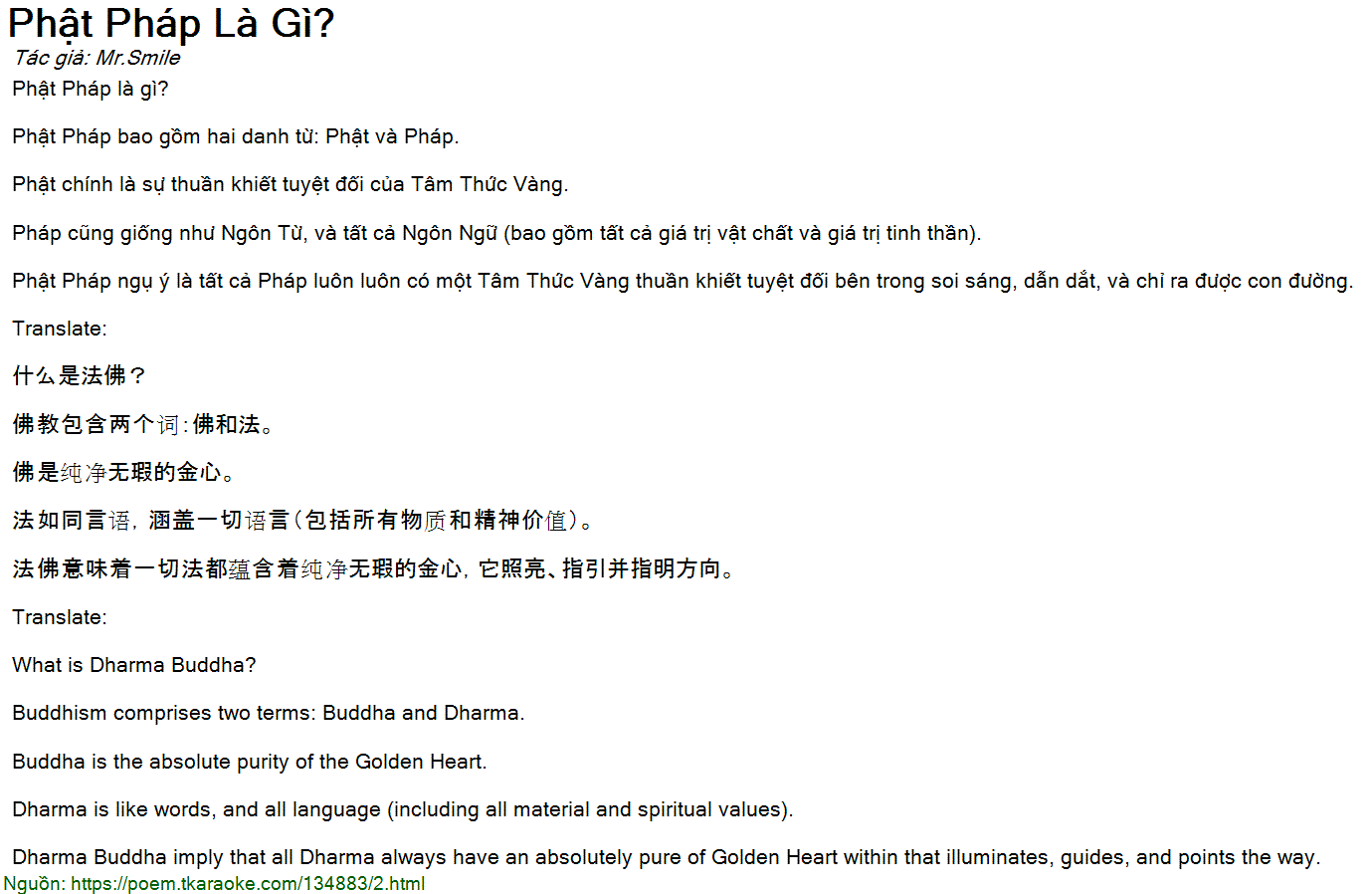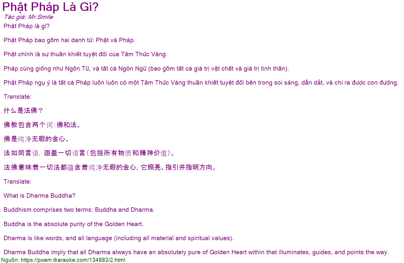 Phật Pháp ngụ ý là tất cả Pháp luôn luôn có một Tâm Thức Vàng thuần khiết tuyệt đối bên trong soi sáng, dẫn dắt, và chỉ ra được con đường.