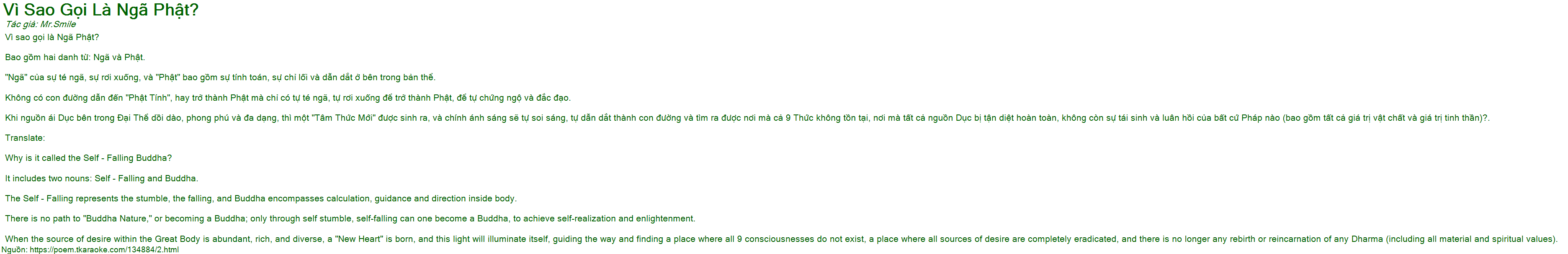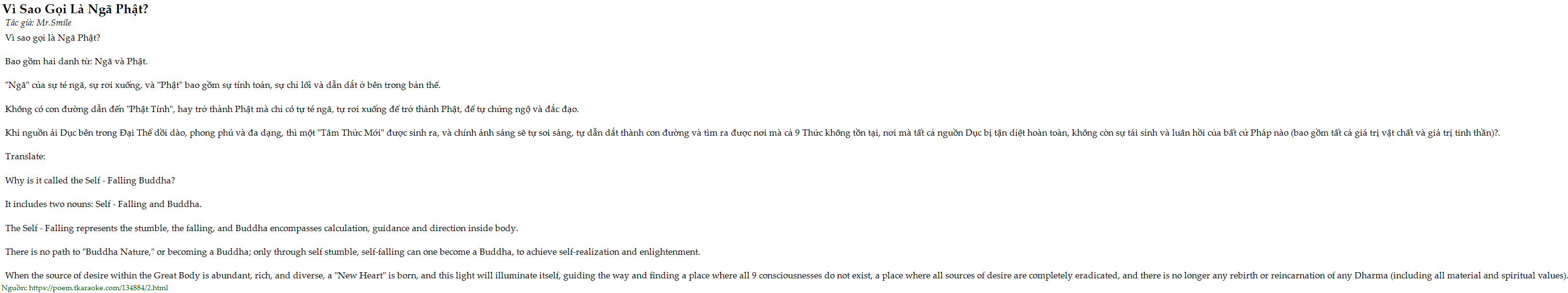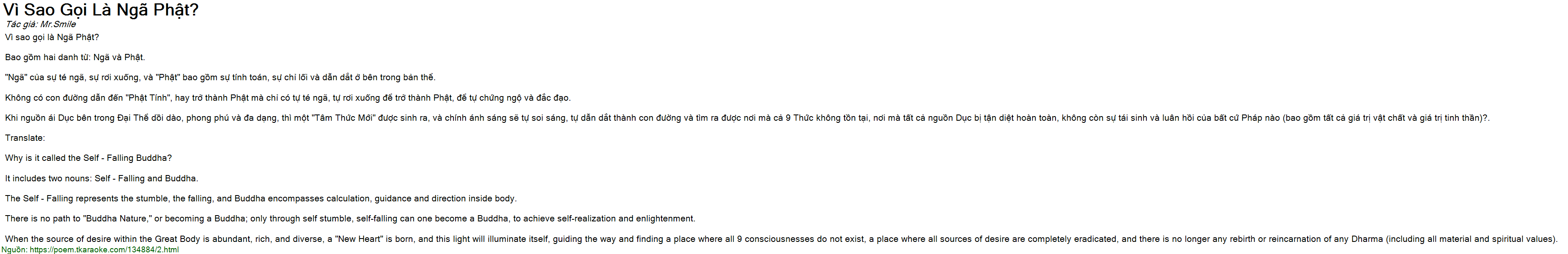 It includes two nouns: Self - Falling and Buddha.