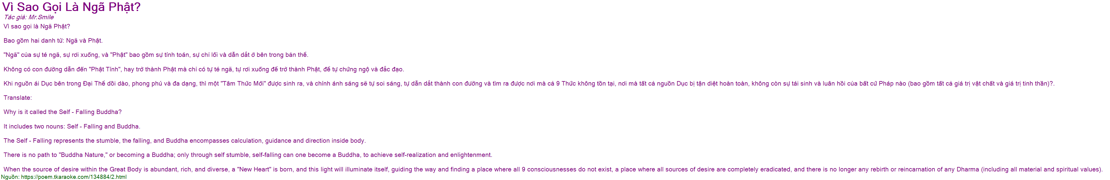 "Ngã" của sự té ngã, sự rơi xuống, và "Phật" bao gồm sự tính toán, sự chỉ lối và dẫn dắt ở bên trong bản thể.