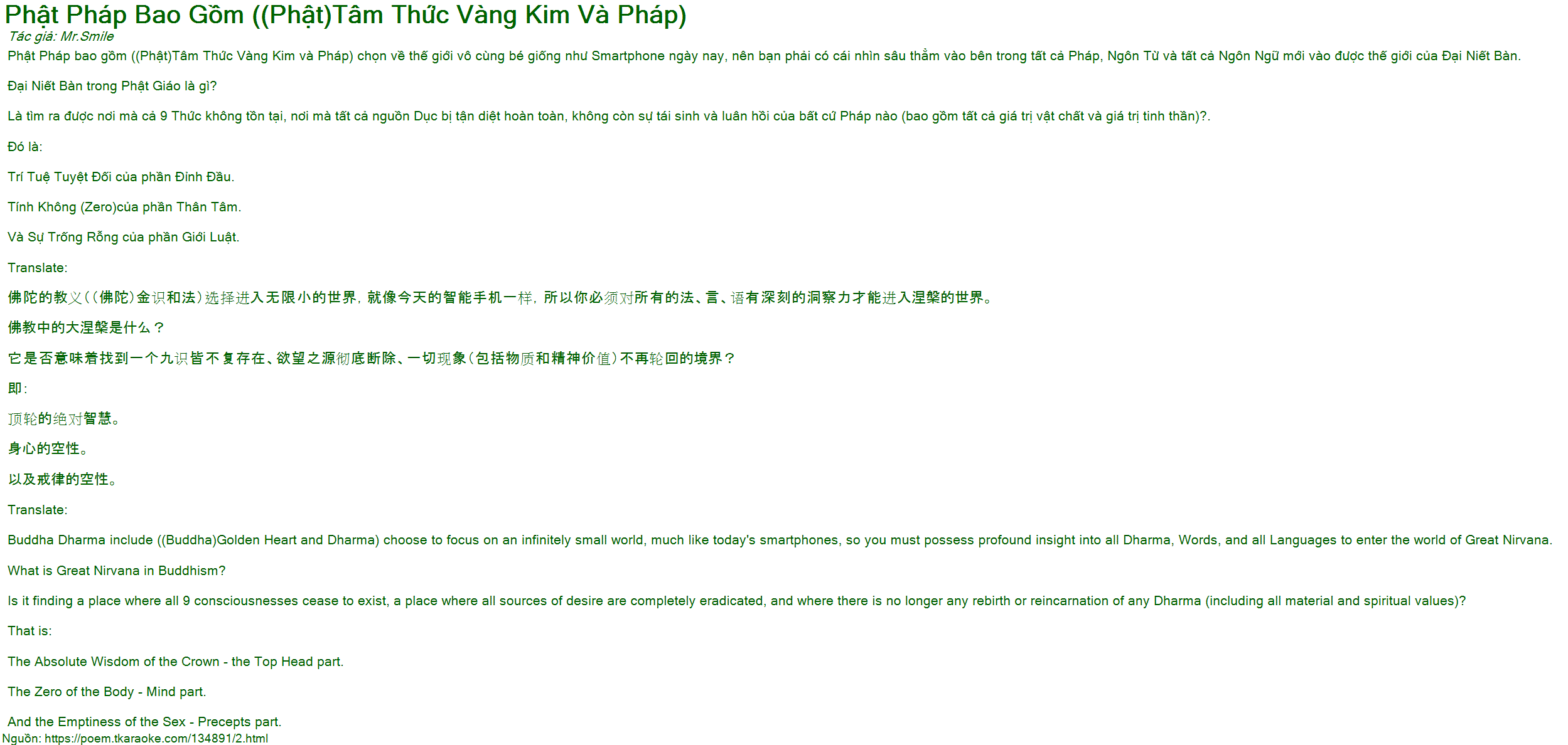 phật pháp bao gồm ((phật)tâm thức vàng kim và pháp)