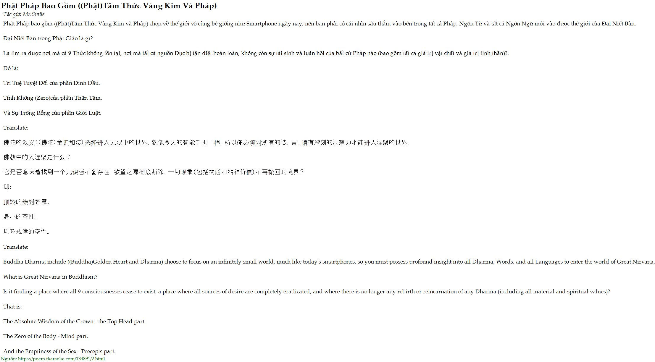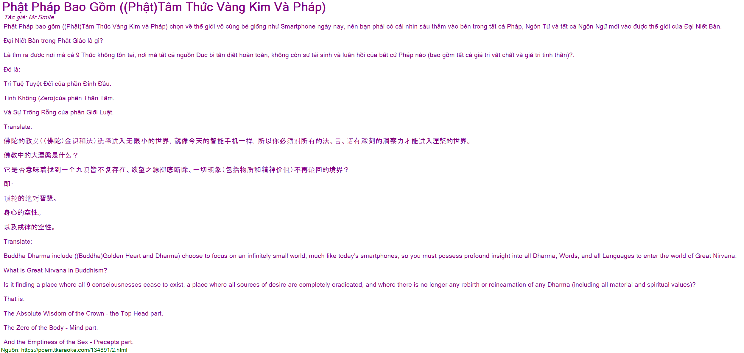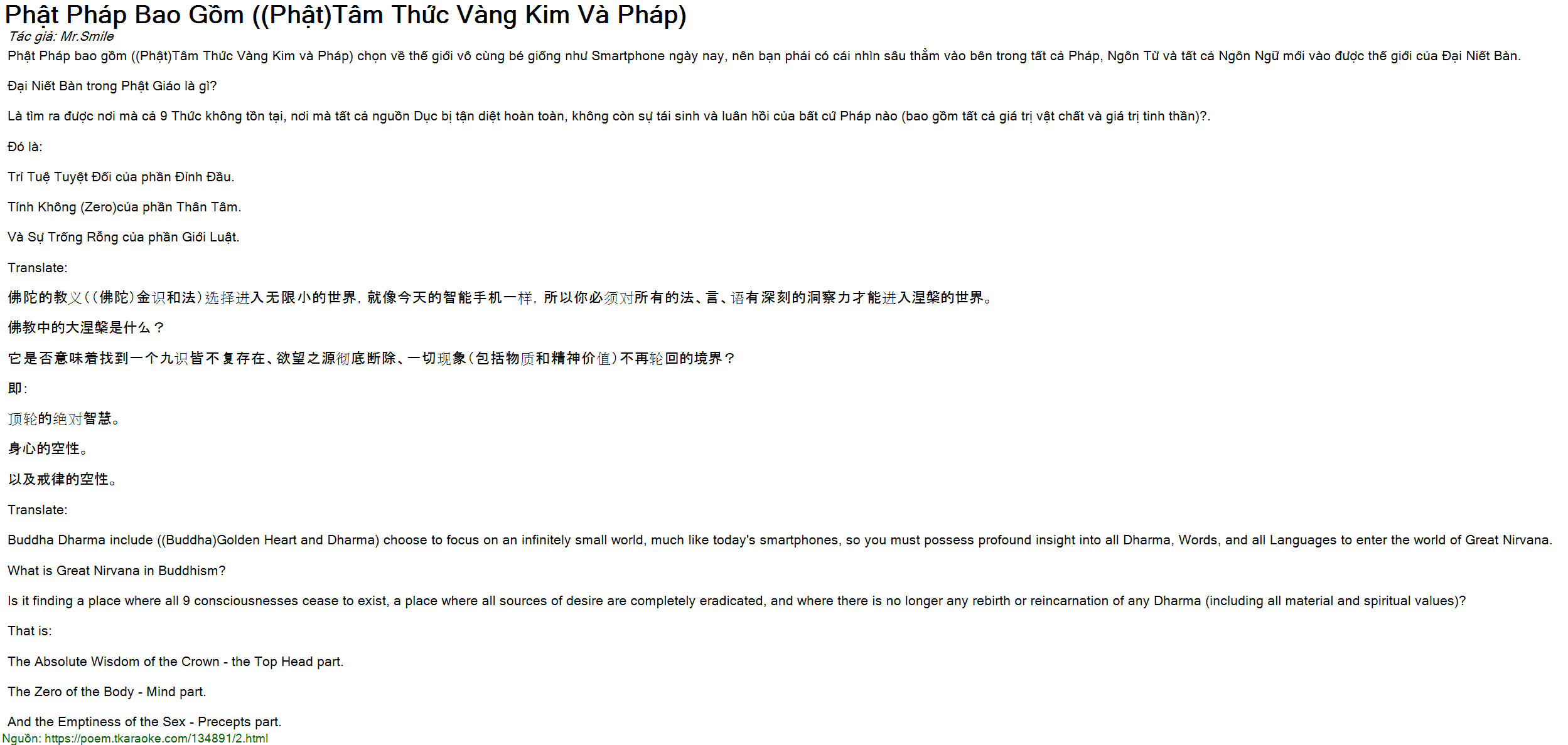 Phật Pháp bao gồm ((Phật)Tâm Thức Vàng Kim và Pháp) chọn về thế giới vô cùng bé giống như Smartphone ngày nay, nên bạn phải có cái nhìn sâu thẳm vào bên trong tất cả Pháp, Ngôn Từ và tất cả Ngôn Ngữ mới vào được thế giới của Đại Niết Bàn.