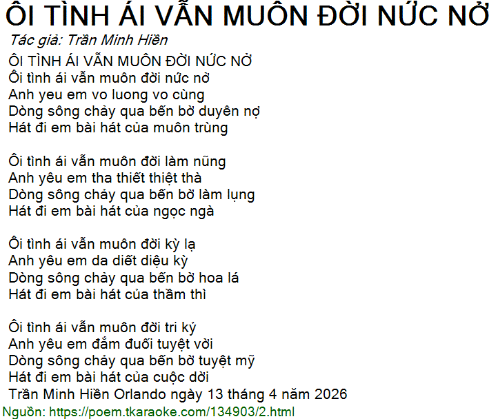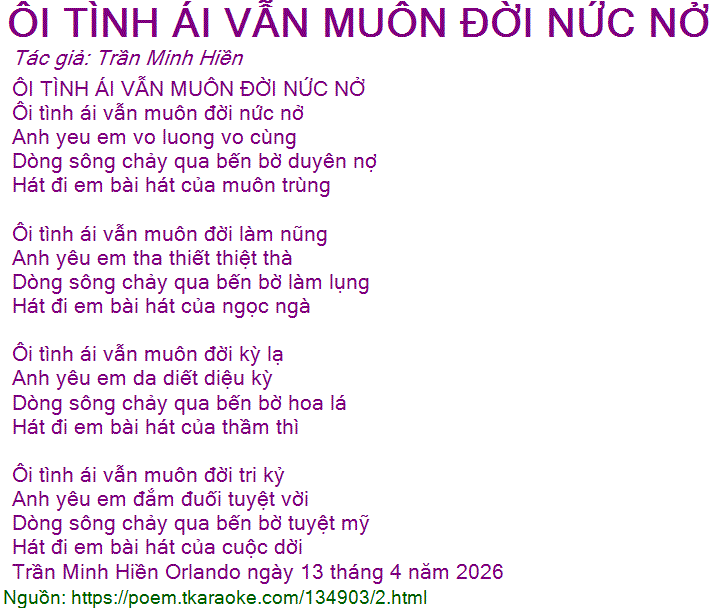 ÔI TÌNH ÁI VẪN MUÔN ĐỜI NỨC NỞ