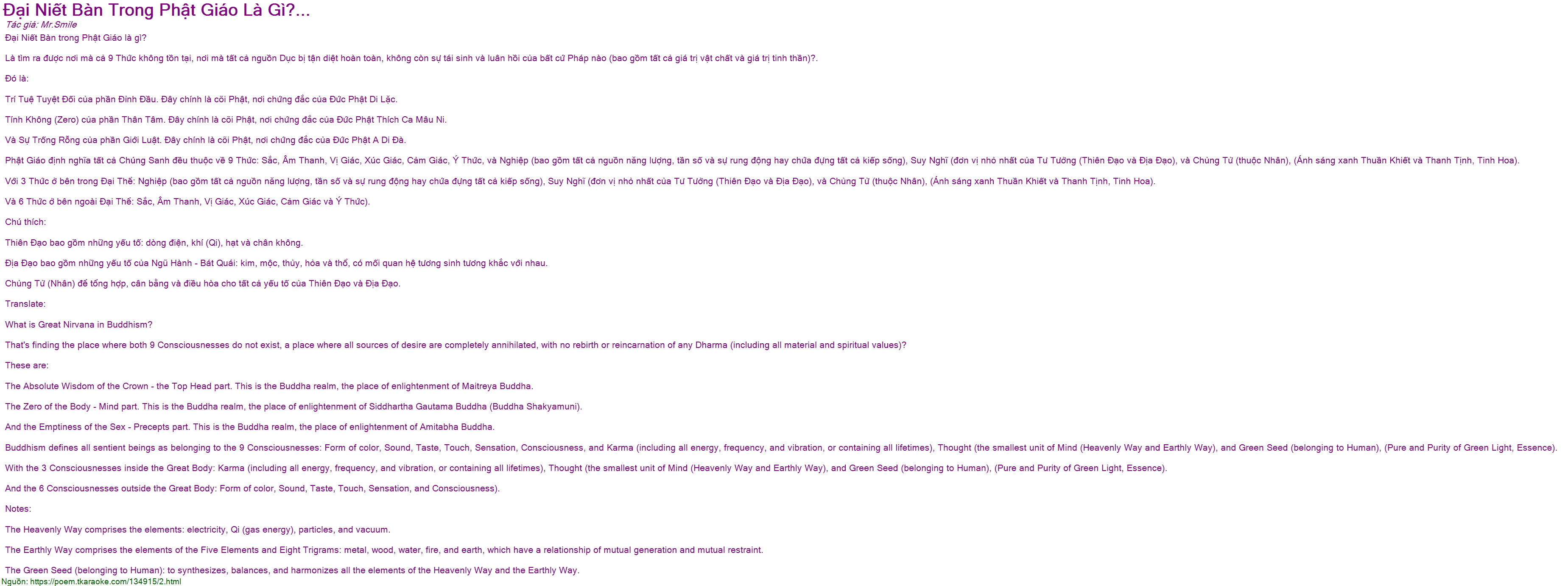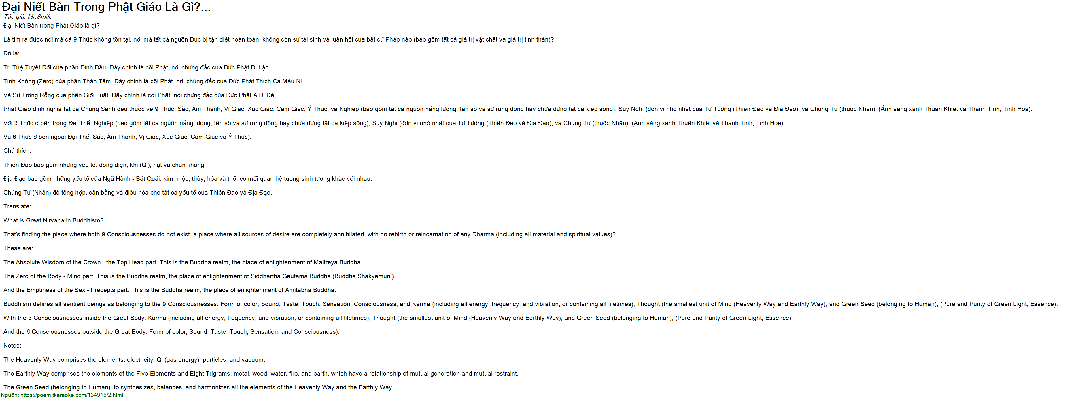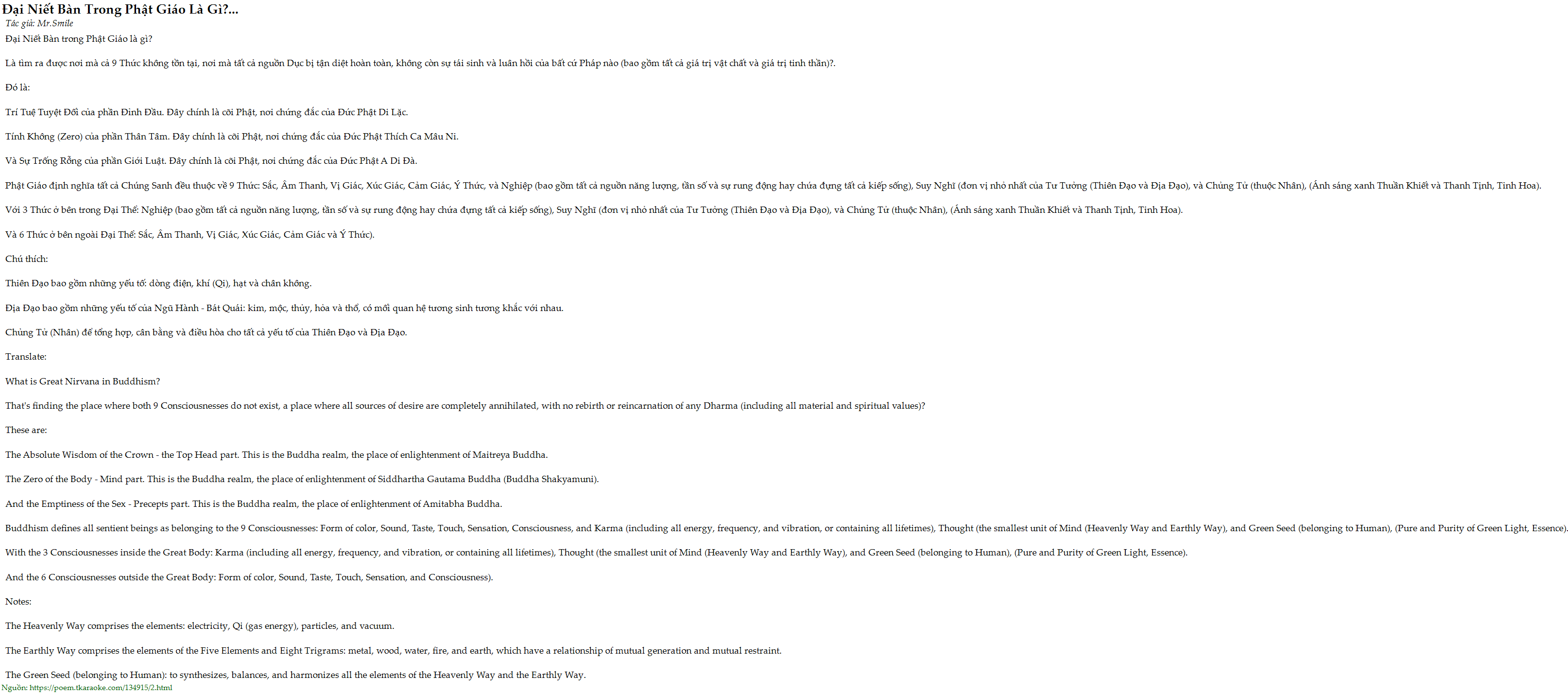 Tính Không (Zero) của phần Thân Tâm. Đây chính là cõi Phật, nơi chứng đắc của Đức Phật Thích Ca Mâu Ni.