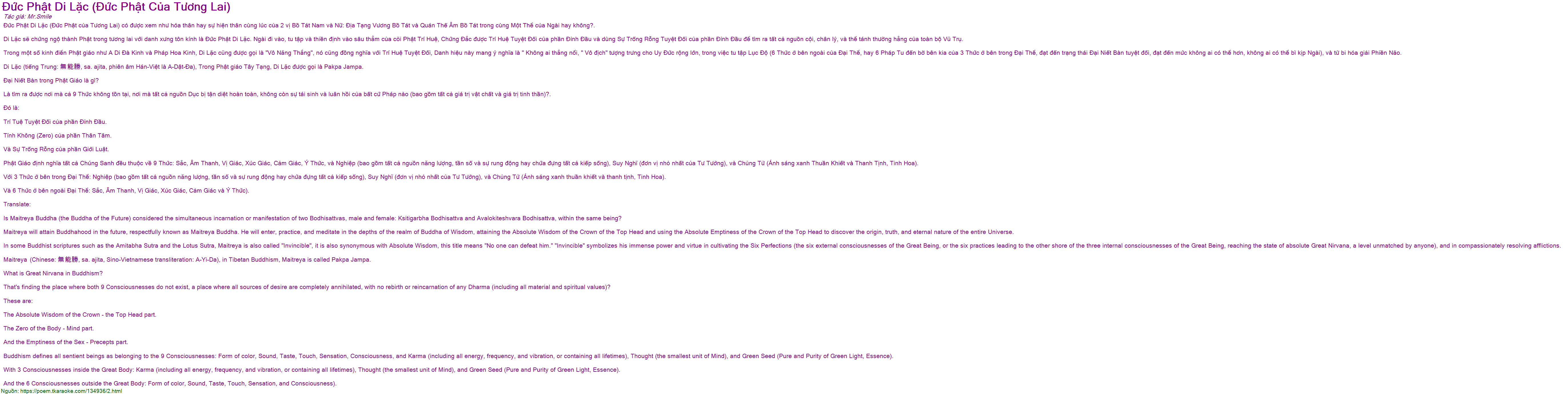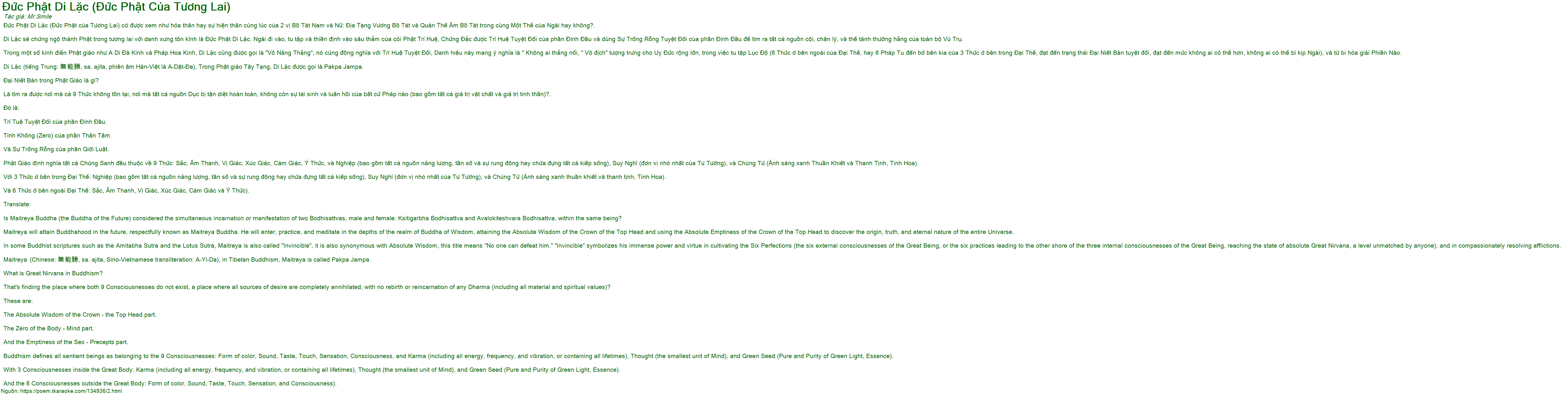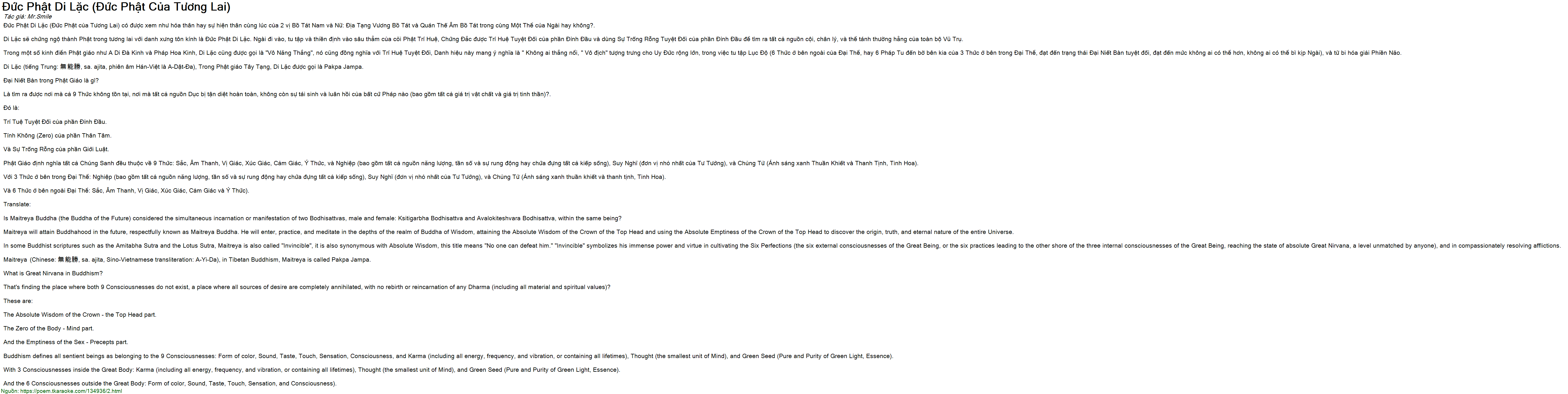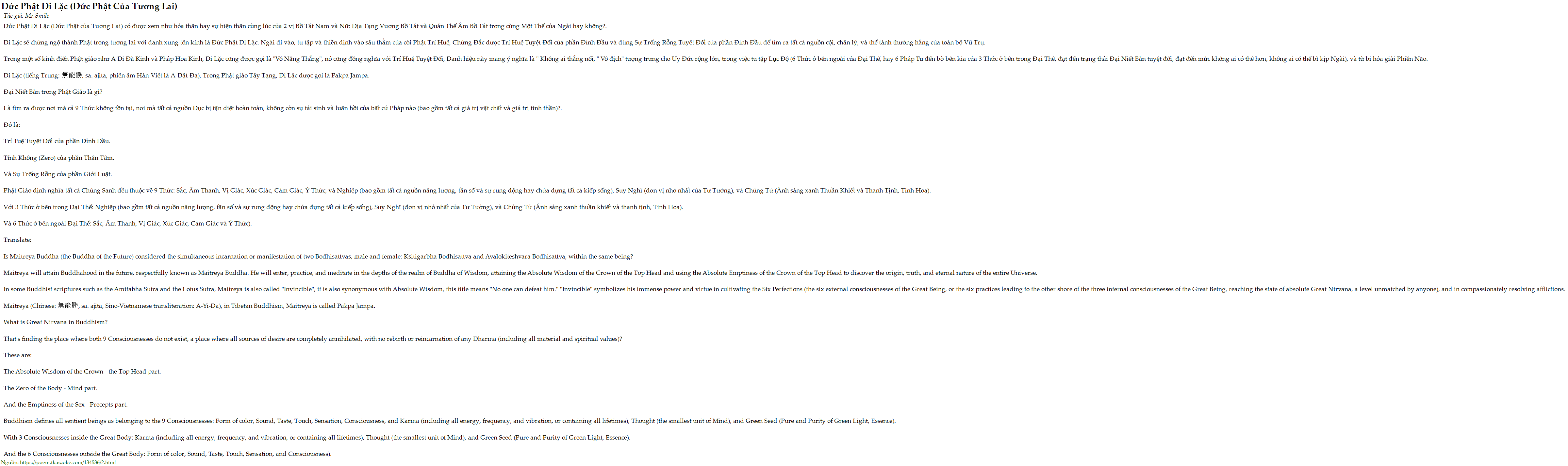 Đức Phật Di Lặc (Đức Phật của Tương Lai) có được xem như hóa thân hay sự hiện thân cùng lúc của 2 vị Bồ Tát Nam và Nữ: Địa Tạng Vương Bồ Tát và Quán Thế Âm Bồ Tát trong cùng Một Thể của Ngài hay không?.