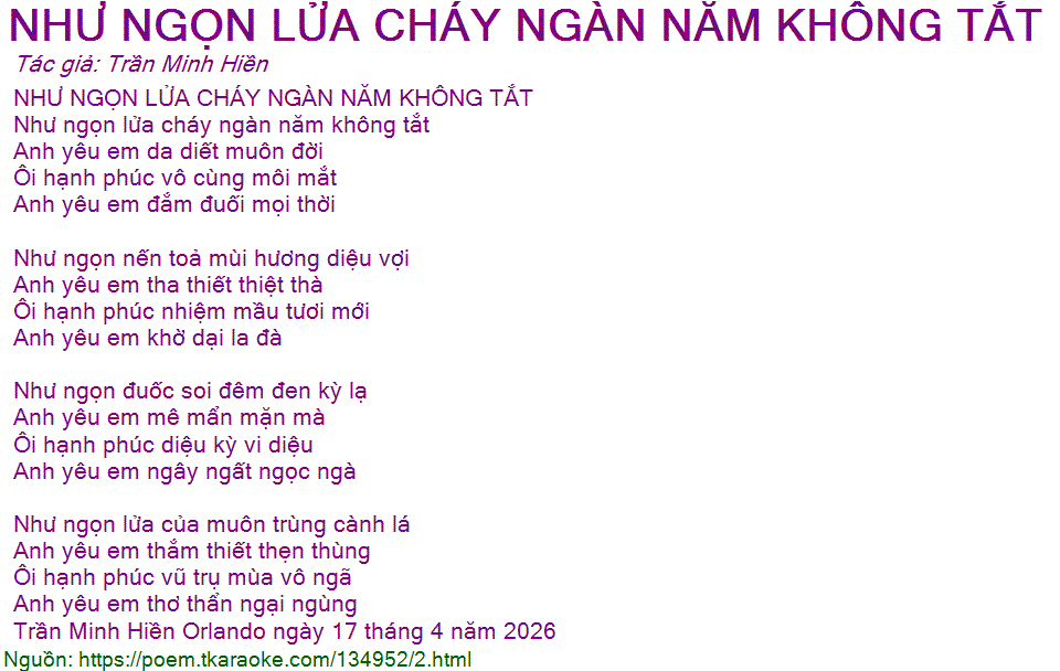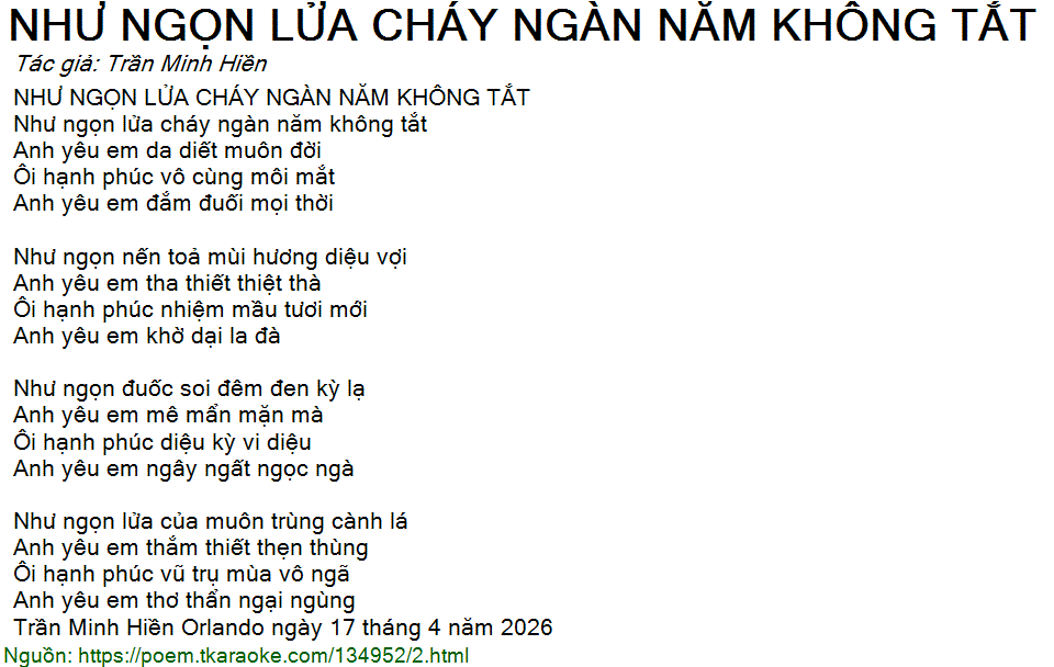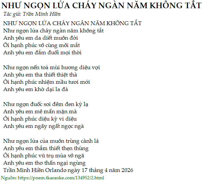 NHU NGON LUA CHAY NGAN NAM KHONG TAT