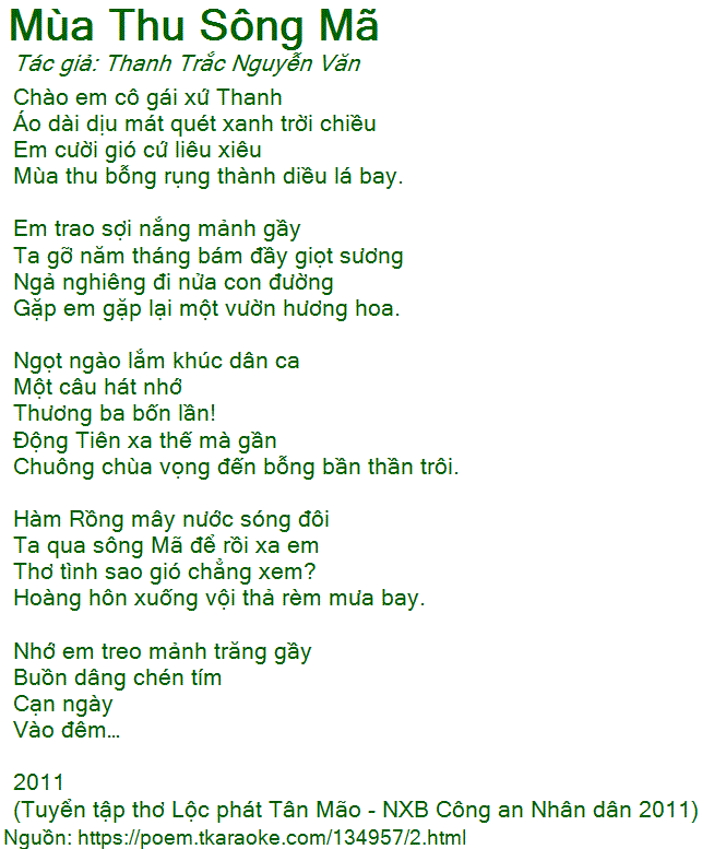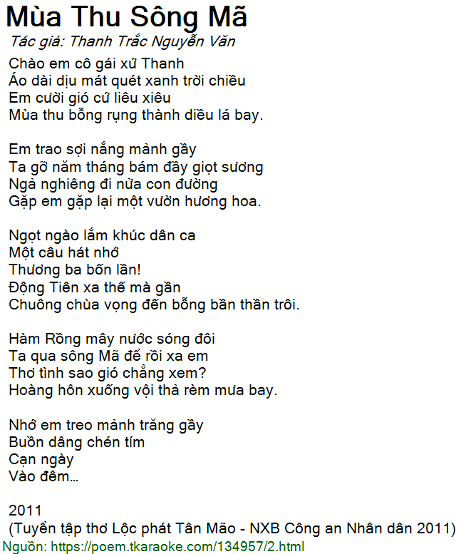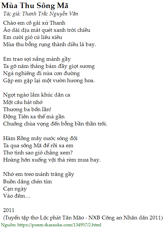 (Tuyển tập thơ Lộc phát Tân Mão - NXB Công an Nhân dân 2011)