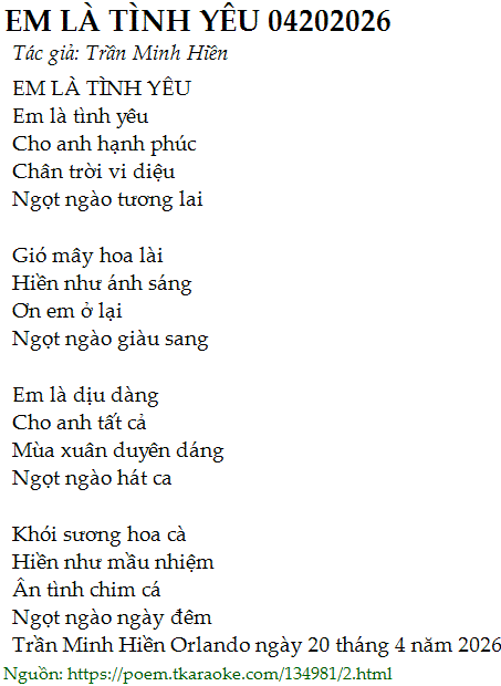 em là tình yêu 04202026