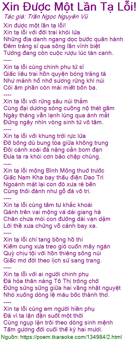 xin được một lần tạ lỗi!