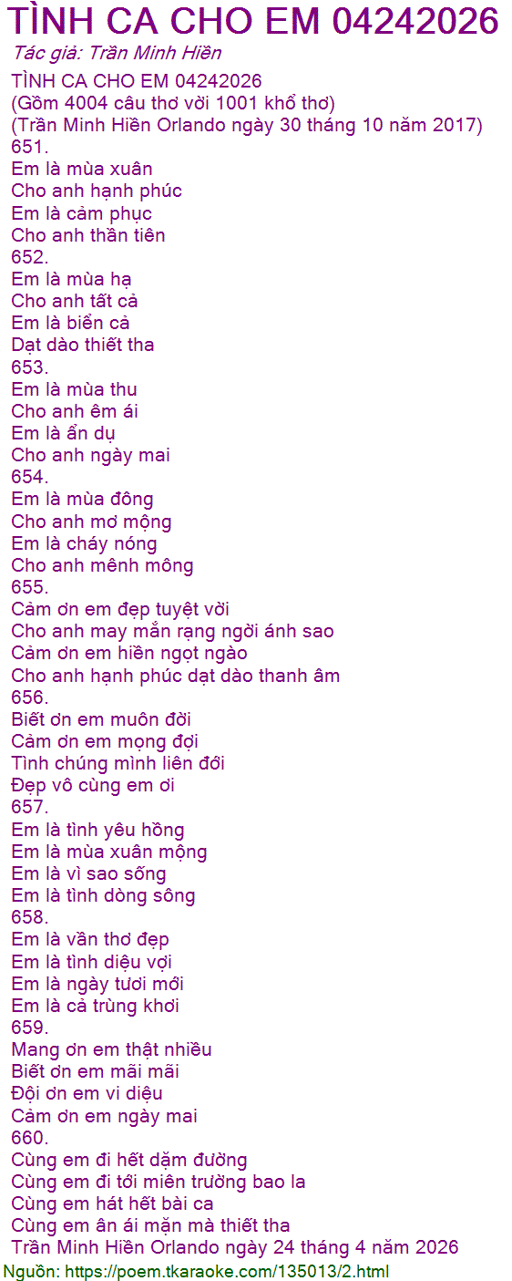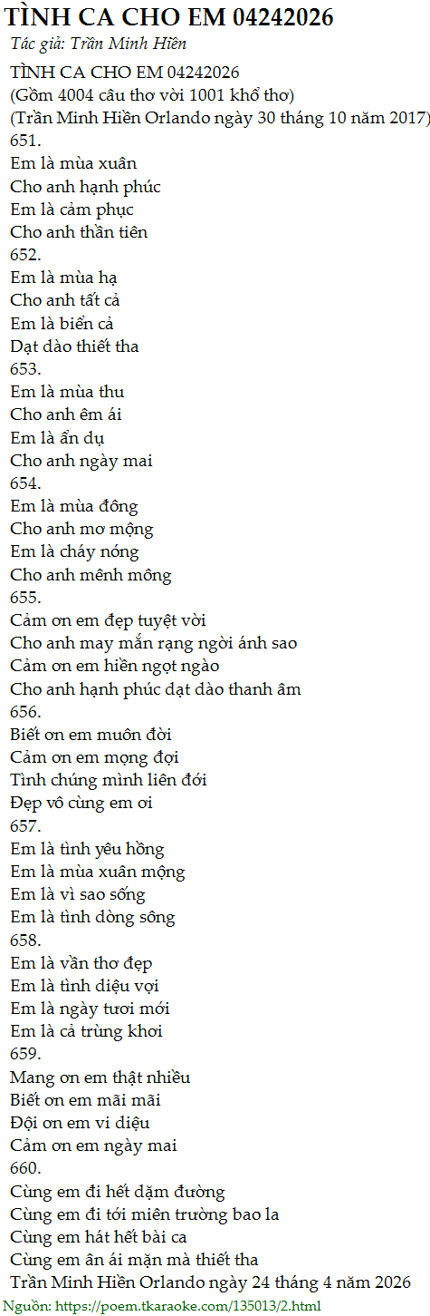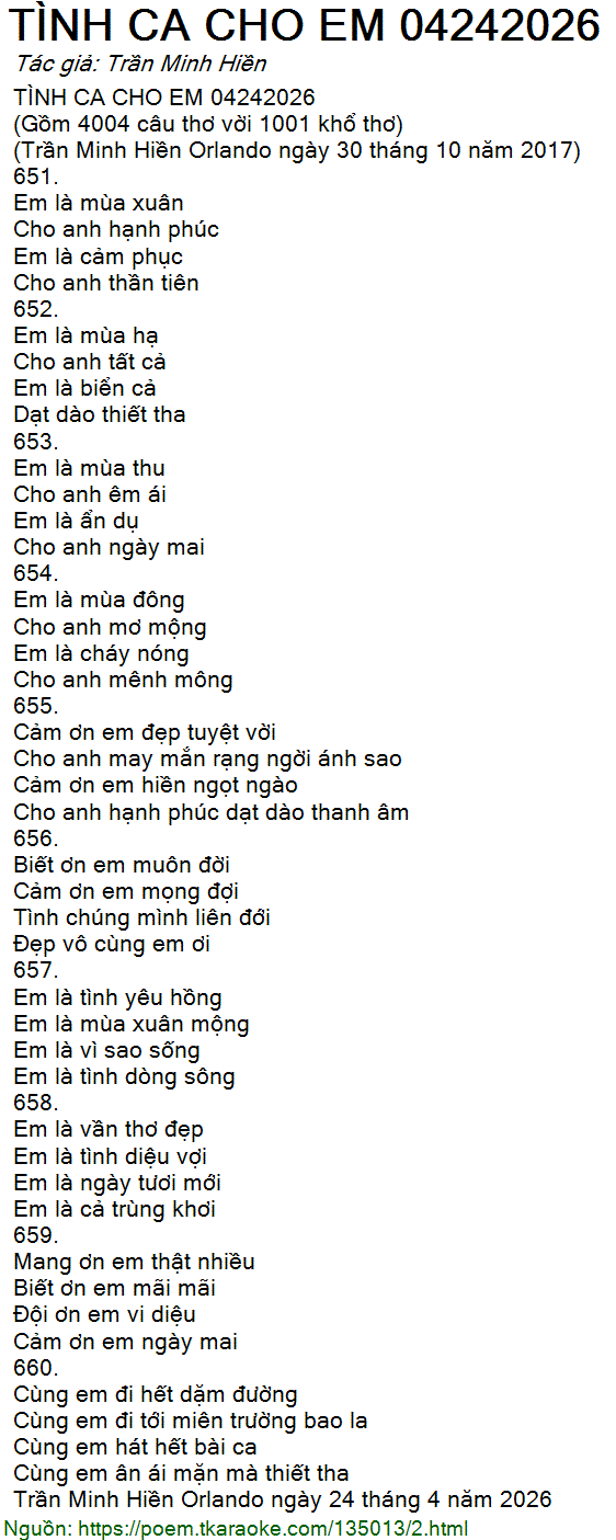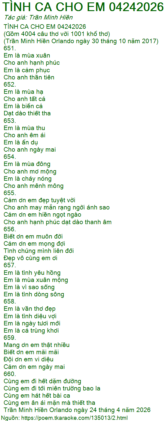 TÌNH CA CHO EM 04242026