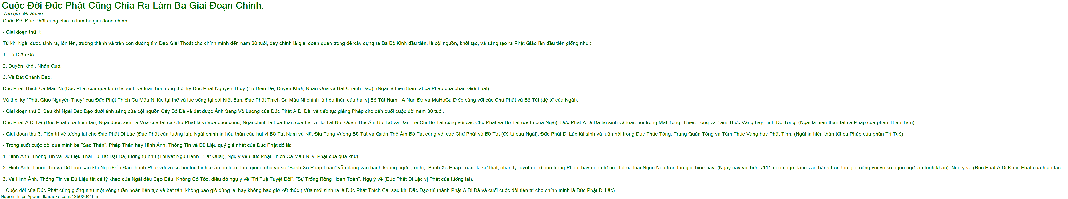 cuộc đời đức phật cũng chia ra làm ba giai đoạn chính.