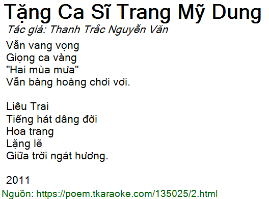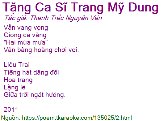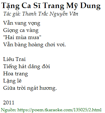 Thơ 0233: Tặng Ca Sĩ Trang Mỹ Dung
