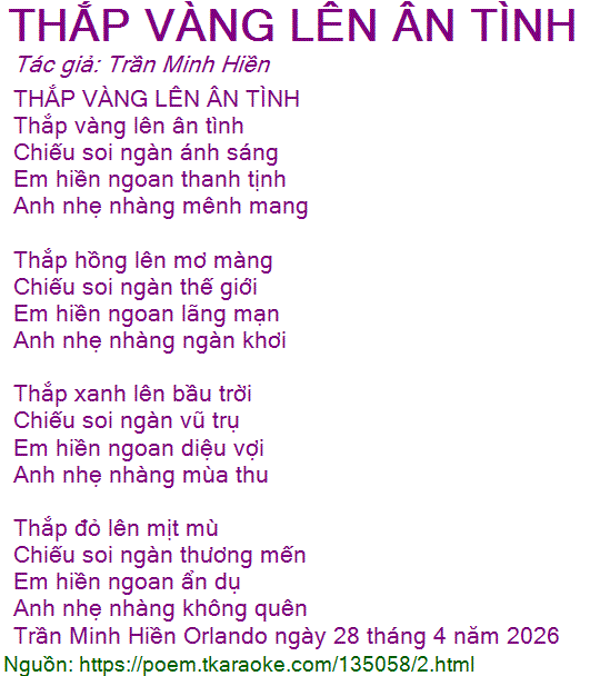 THẮP VÀNG LÊN ÂN TÌNH
