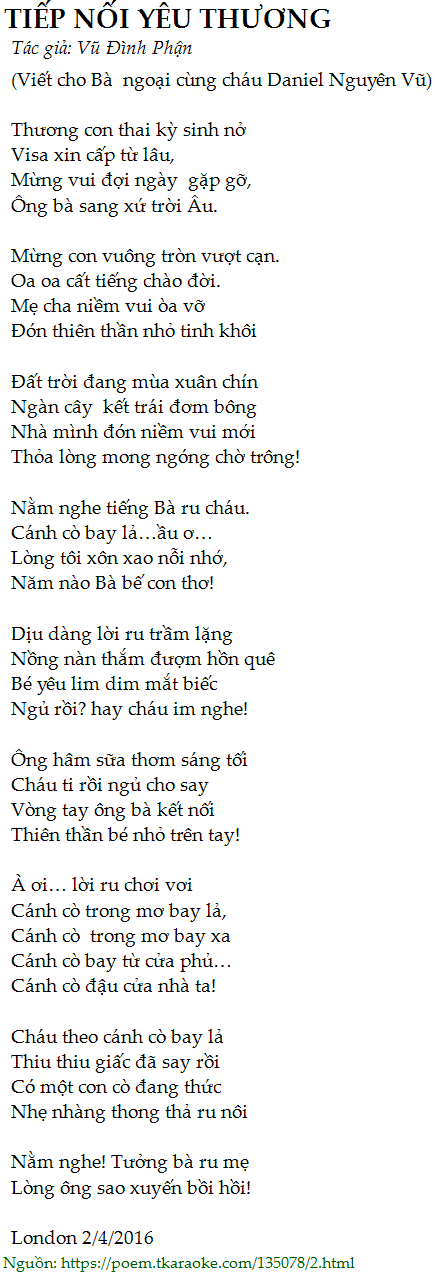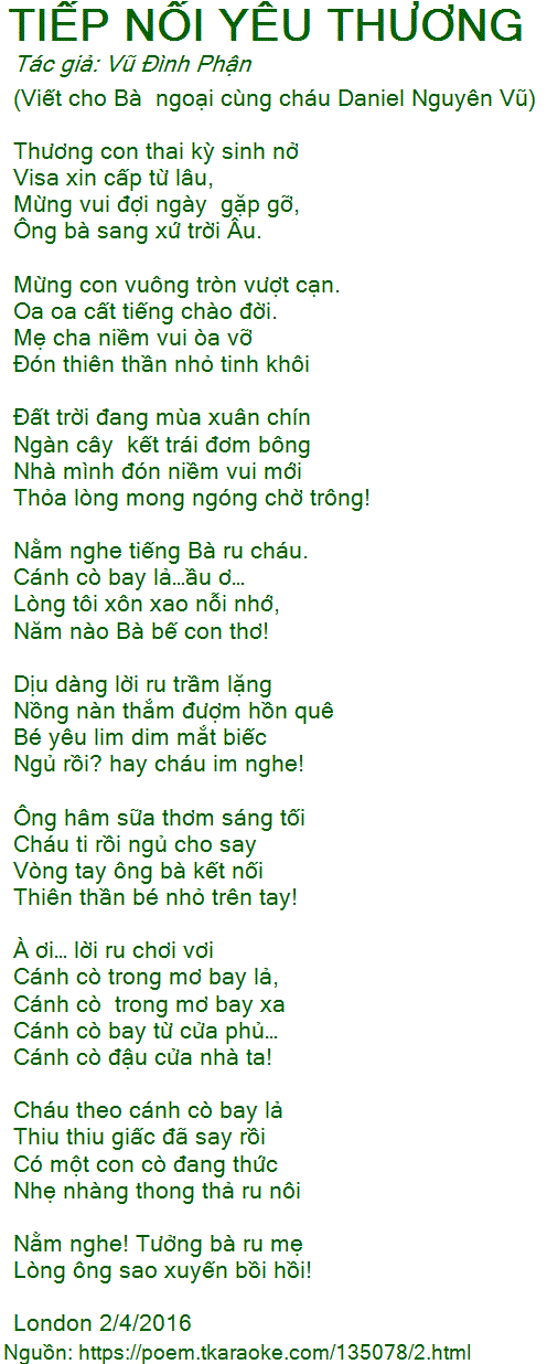 (Viết cho Bà ngoại cùng cháu Daniel Nguyên Vũ)