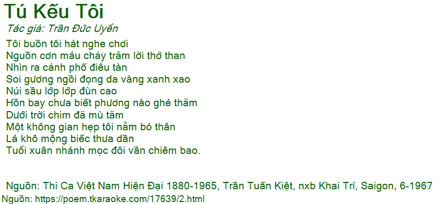 Nguồn: Thi Ca Việt Nam Hiện Ðại 1880-1965, Trần Tuấn Kiệt, nxb Khai Trí, Saigon, 6-1967
