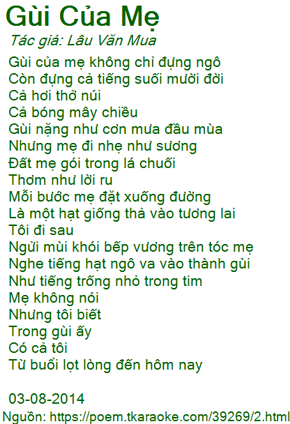 Ngửi mùi khói bếp vương trên tóc mẹ