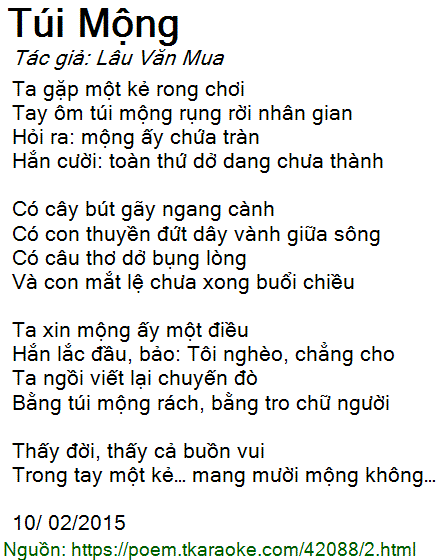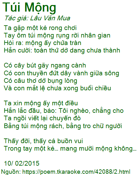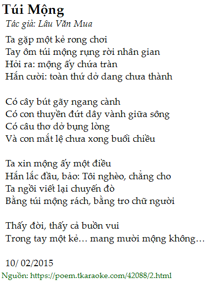 Tay ôm túi mộng rụng rời nhân gian