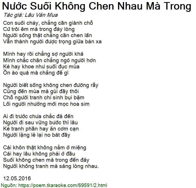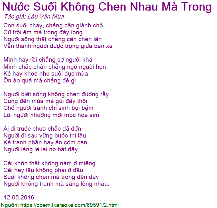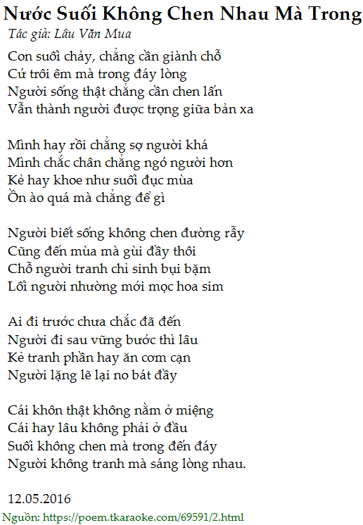 nước suối không chen nhau mà trong