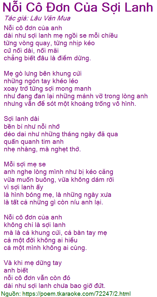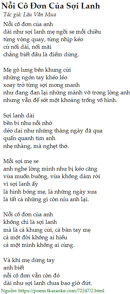 dài như sợi lanh mẹ ngồi se mỗi chiều