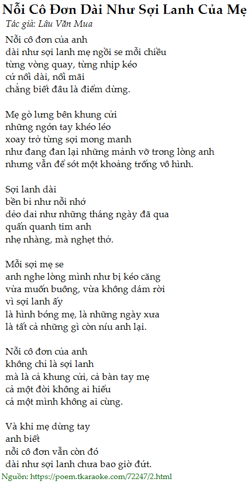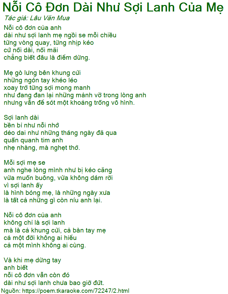 dài như sợi lanh mẹ ngồi se mỗi chiều